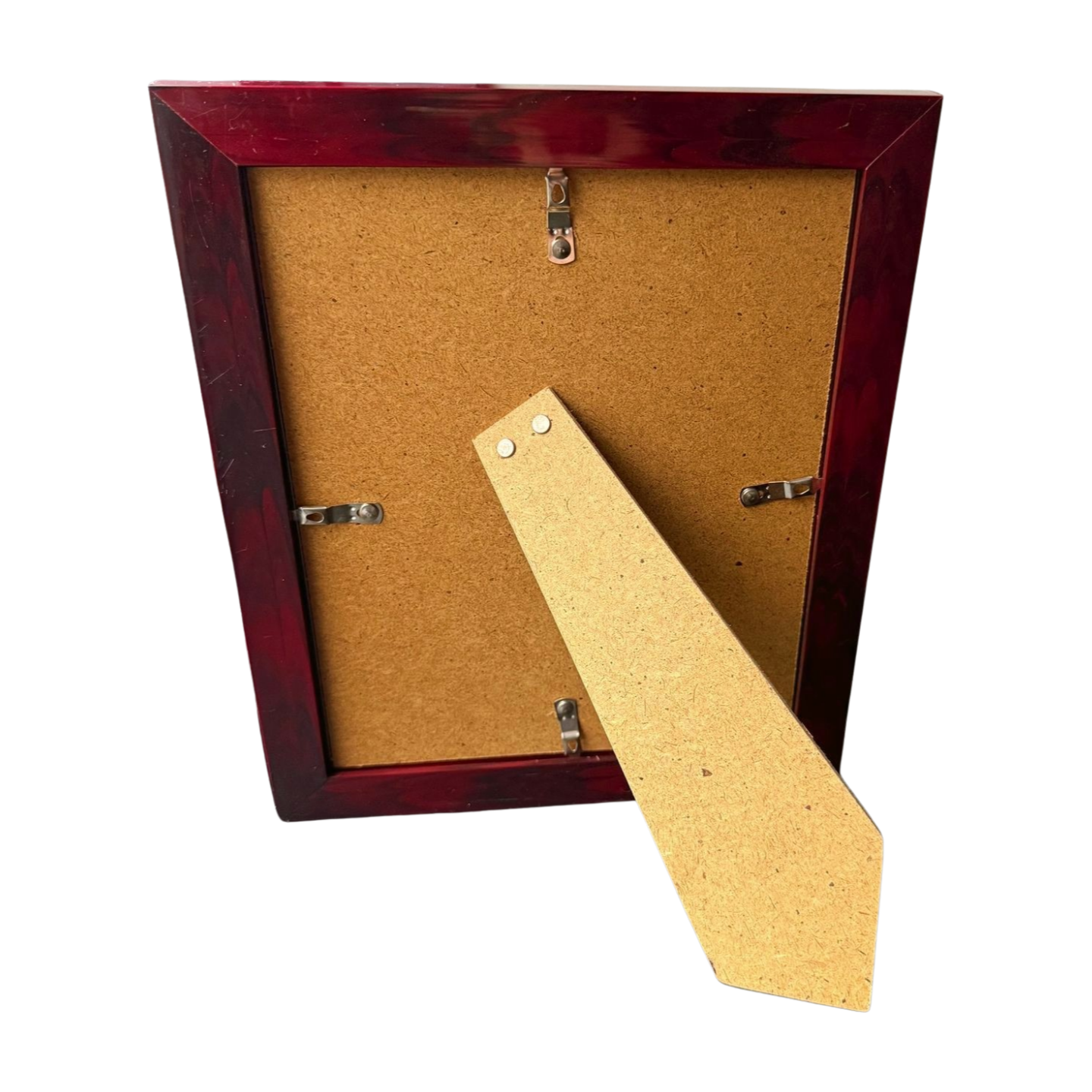 Mooie rode fotolijst met marmer-effect, geschikt voor foto’s van 25×30 cm. De lijst kan zowel staand neergezet worden als opgehangen worden dankzij het stevige standaardje en de metalen ophanghaakjes.