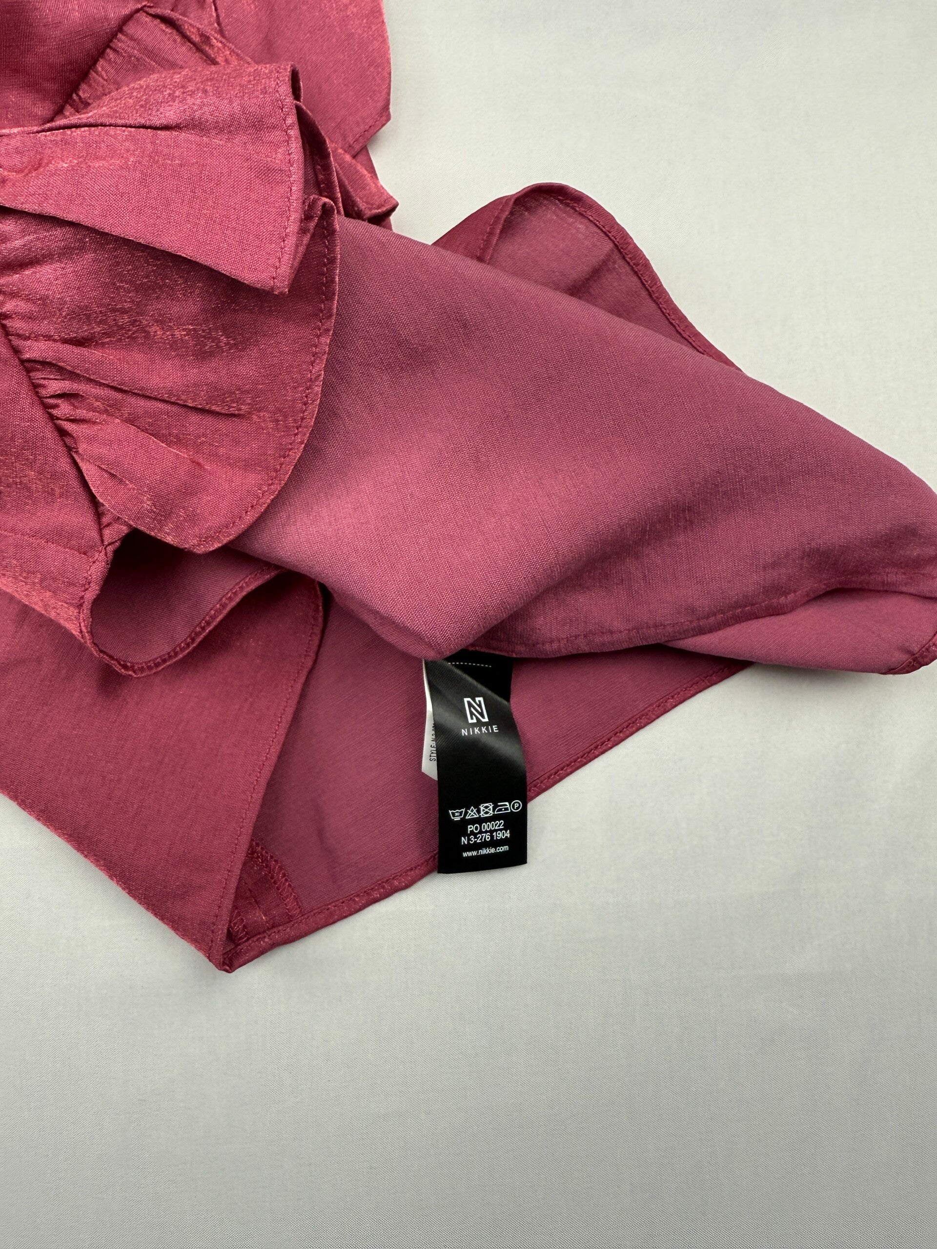 Maak een statement met deze prachtige rok van NIKKIE! De diepe donkerroze/fuchsia kleur gecombineerd met de glanzende satijnen stof zorgt voor een luxe en feestelijke uitstraling.