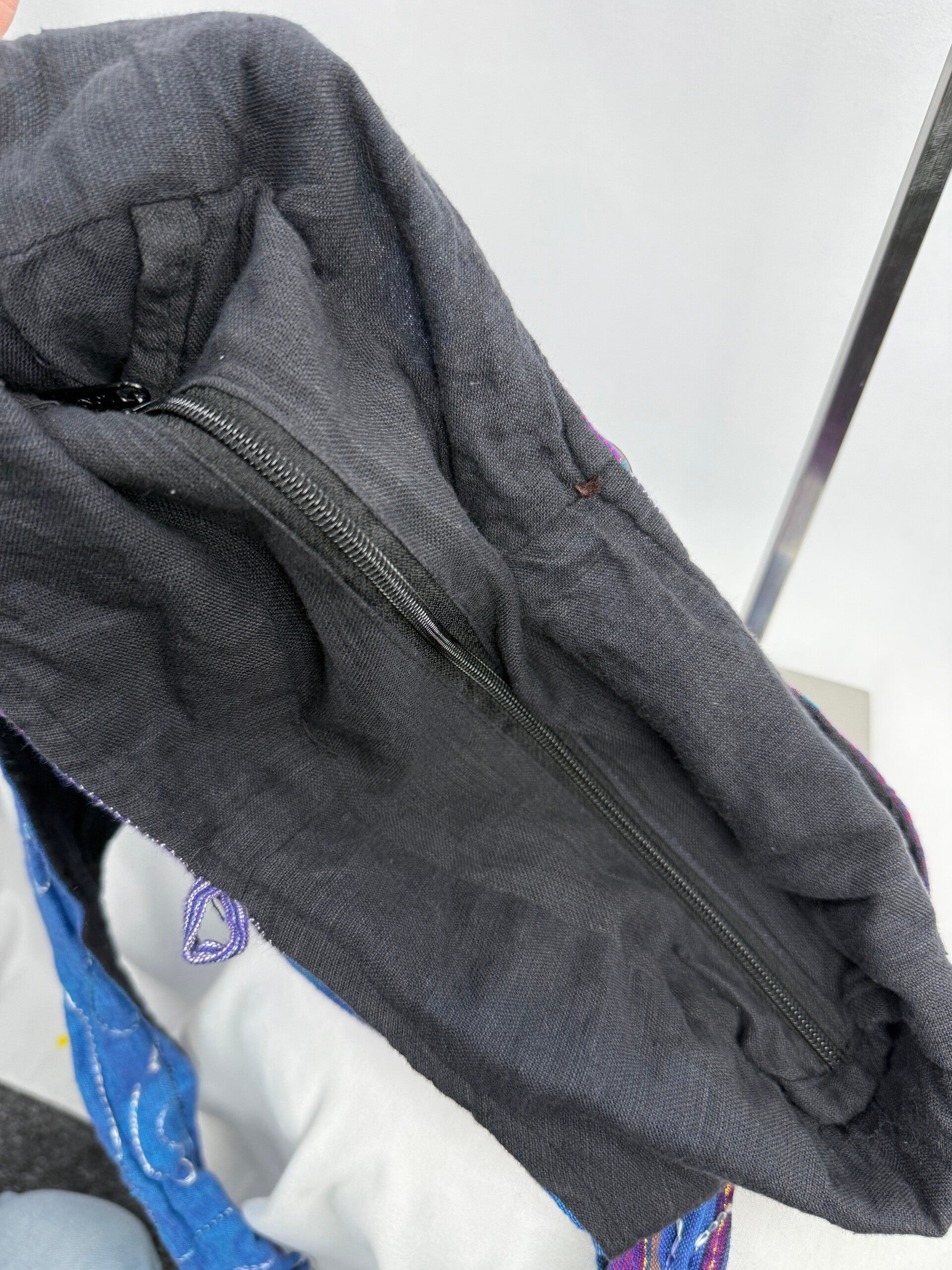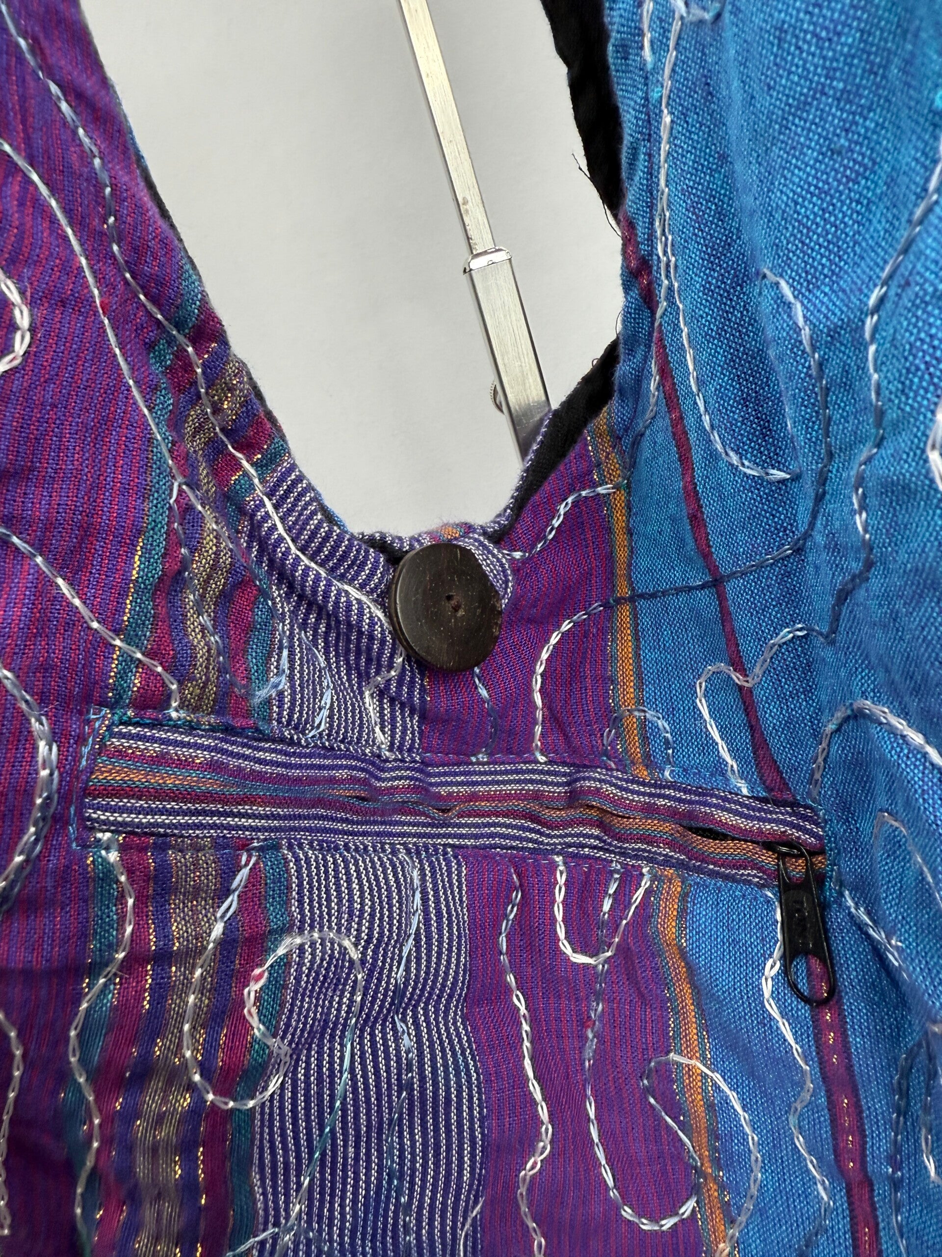 Vintage boho schoudertas – handgemaakt katoen – blauw/paars