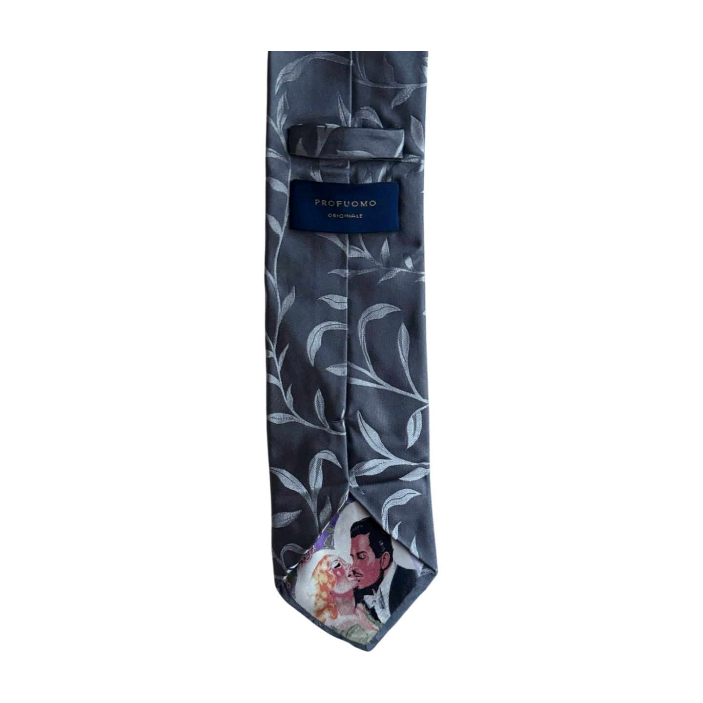 Stijlvolle vintage stropdas van Profuomo, uitgevoerd in een elegante grijstint met een subtiel bladmotief. Een tijdloos ontwerp dat perfect past bij zowel zakelijke als chique outfits. Hoogwaardige afwerking en luxe uitstraling.