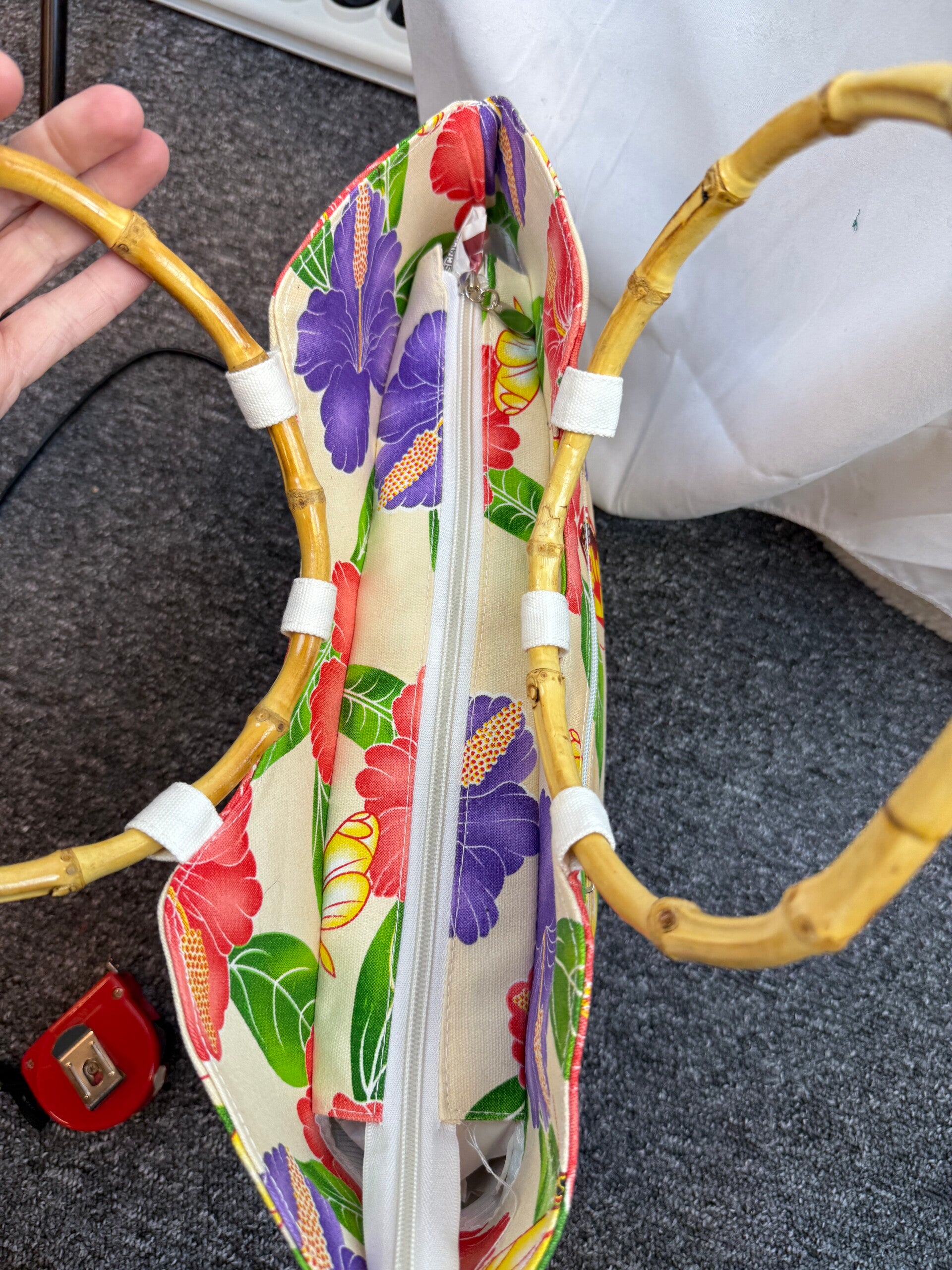 vintage tas, handtas, bloemen tas, vlinder tas, pailletten tas, bamboe handvat tas, retro handtas, boho tas, zomerse tas, kleurrijke tas, vintage accessoires, stoffen handtas, unieke tas