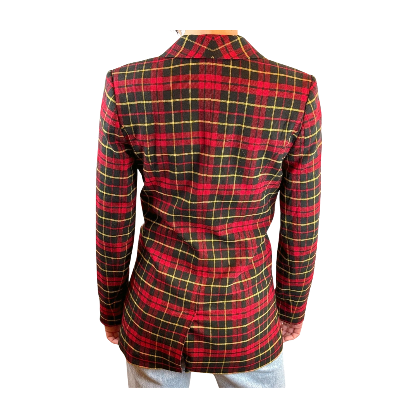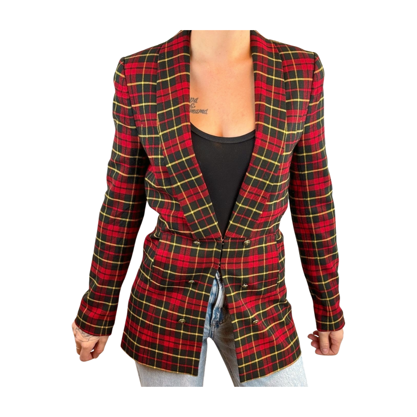 nikkie blazer, kate moss nikkie, geruite blazer dames, tartan blazer, rode blazer, designer blazer dames, getailleerde blazer, statement blazer, tweedehands merkkleding dames