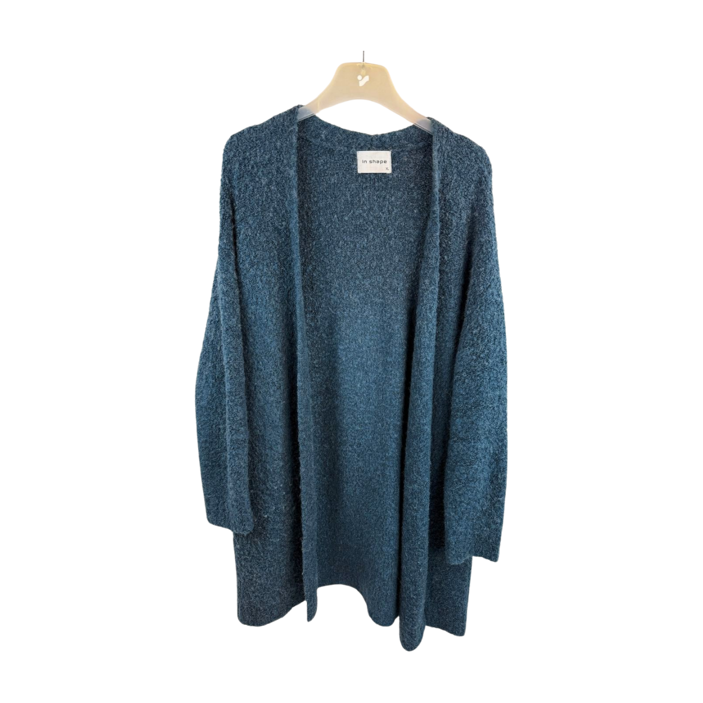 Mooi gebreid vest van het merk In Shape in een stijlvolle blauw/grijze tint. Het vest heeft een open model zonder sluiting en draagt comfortabel door de zachte, warme stof. Ideaal voor dagelijks gebruik of als extra laag in het najaar en de winter.