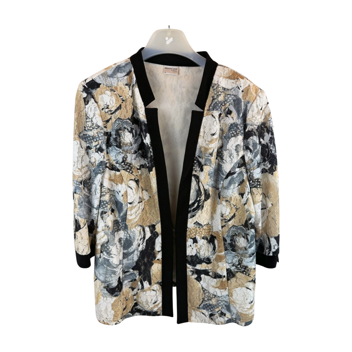 hermann lange, hermann lange collection, dames blazer, grote maten dames, maat 48 dames, blazer bloemenprint, chique blazer dames, nette blazer, vintage look blazer, feestelijke blazer, zwarte blazer dames, beige blazer, tweedehands dameskleding, designer blazer dames, revinty