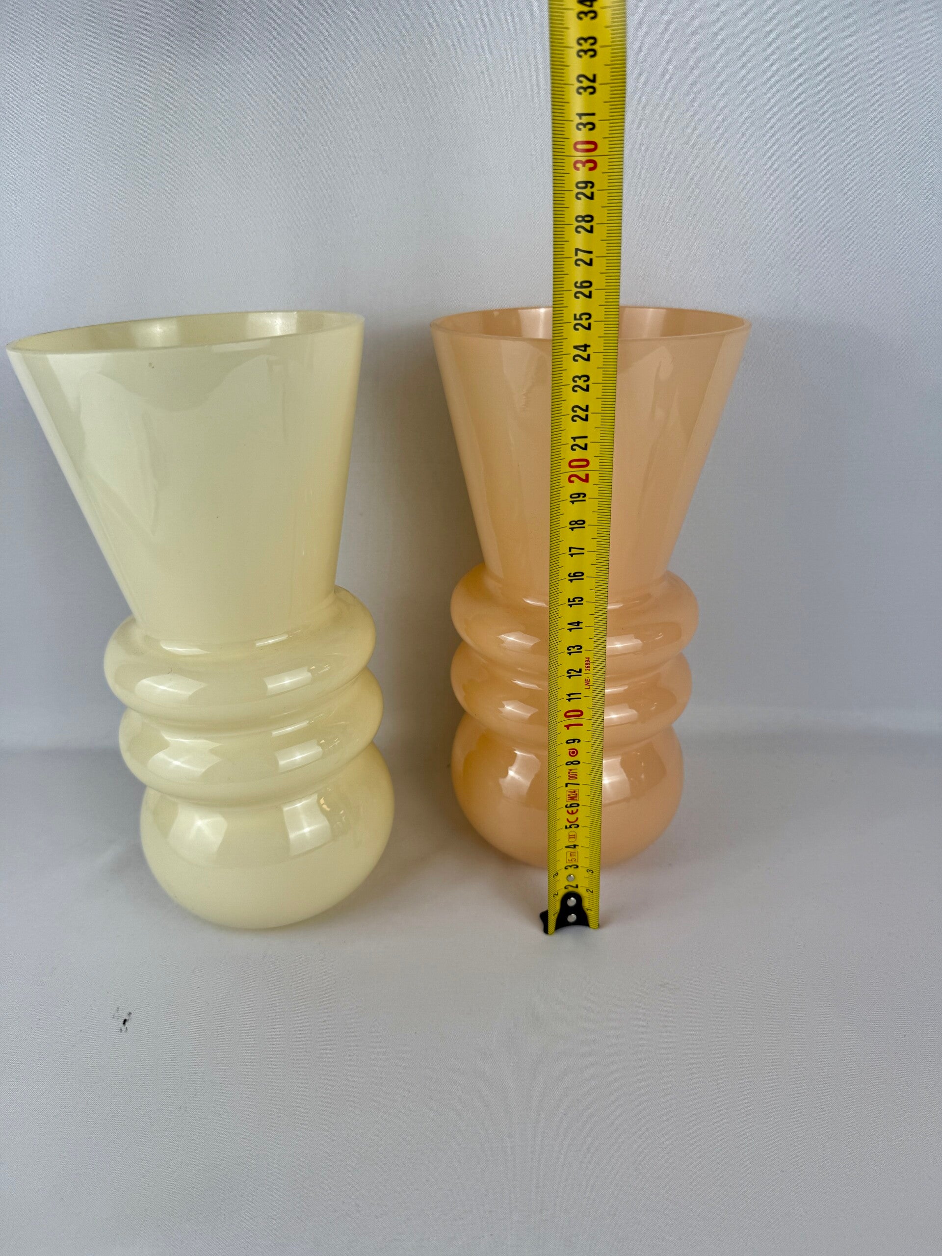 glazen vaas, vintage vaas, set van 2 vazen, crème vaas, perzik vaas, retro interieur, boho woondecoratie, moderne